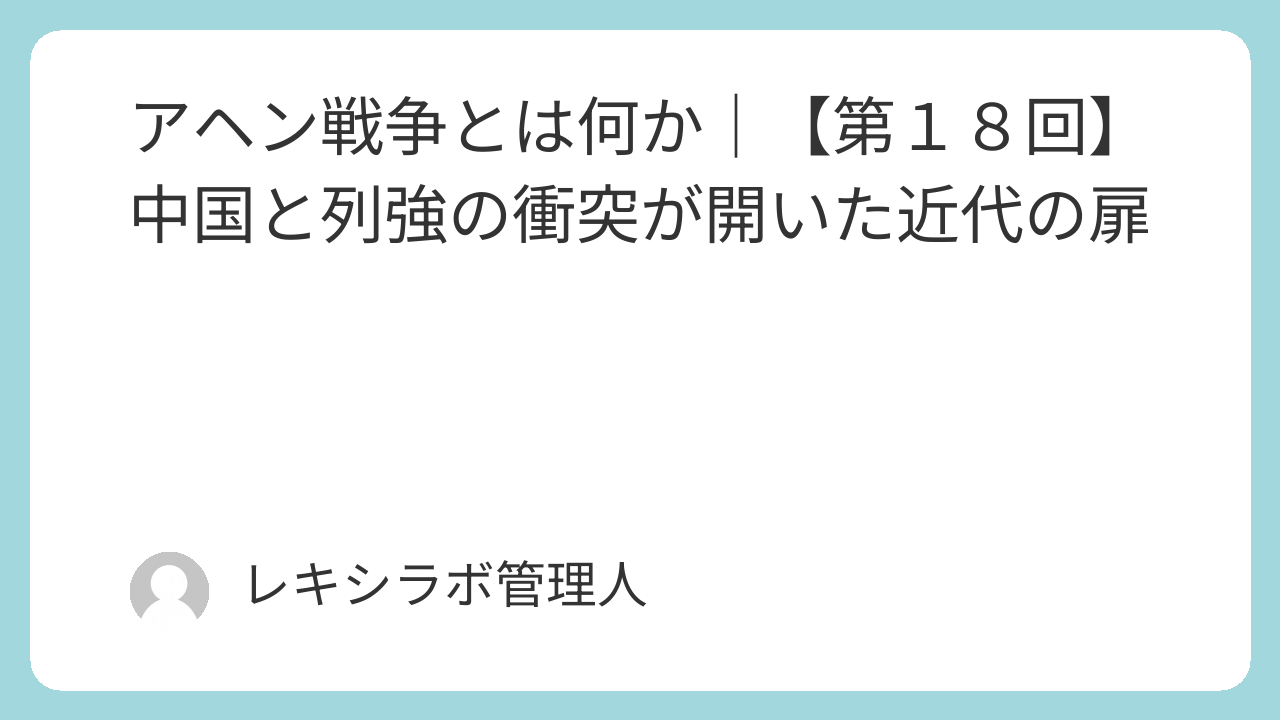 アヘン戦争とは何か|【第18回】中国と列強の衝突が開いた近代の扉