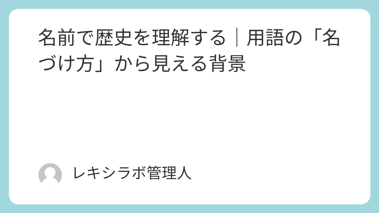 歴史で登場する用語の名前には、当時の人やその後の時代の歴史研究家等が、出来事そのもの以上に価値観・意図・時代認識 を詰め込んでいます。
