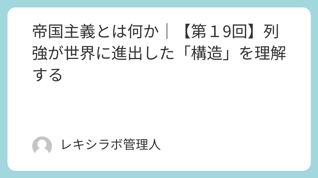 帝国主義とは何か|【第19回】列強が世界に進出した「構造」を理解する