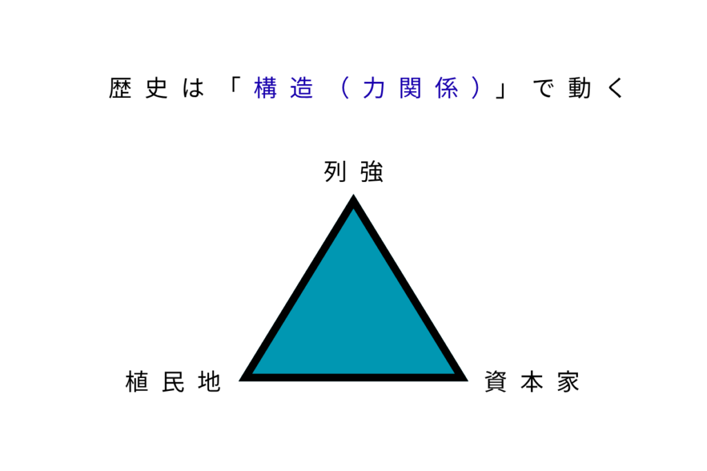 ー具体的な歴史事件を構造として捉える際には、国家や同盟関係、対立軸といった力関係を図として捉える視点が役立ちます。第一次世界大戦は、多様な背景が相互に影響し合って総力戦へと雪だるま式に発展した戦争ですが、このような大規模な出来事も構造の補助線で読み解くことができます。