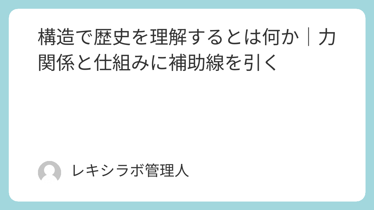 構造で歴史を理解するとは何か|【第4回】力関係と仕組みに補助線を引く