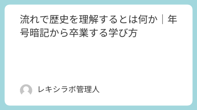 流れで歴史を理解するとは何か|【第2回】年号暗記から卒業する学び方