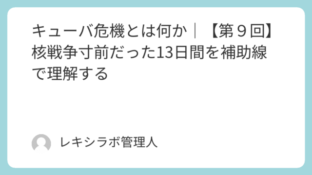 キューバ危機とは何か|【第9回】核戦争寸前だった13日間を補助線で理解する