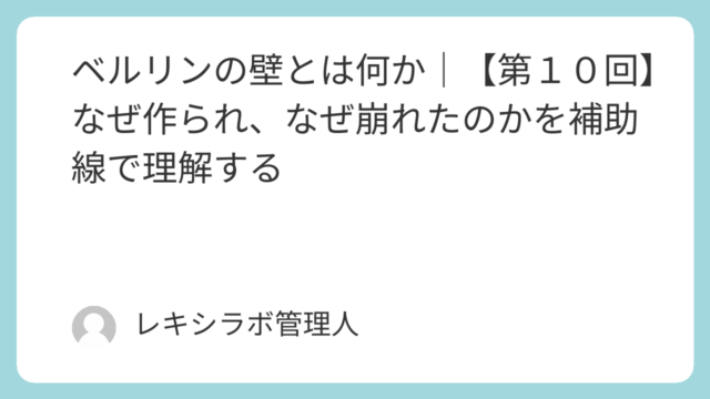 ベルリンの壁とは何か|【第10回】なぜ作られ、なぜ崩れたのかを補助線で理解する